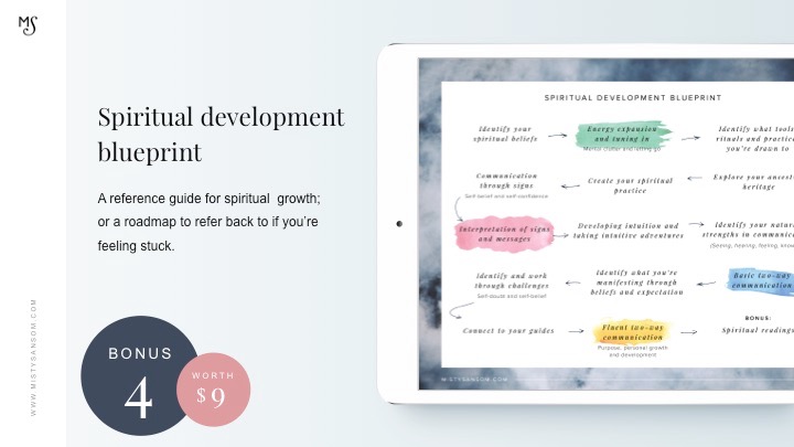 You’ll also dive into communication and signs, and you’ll learn the difference between your intuition and your imagination. You’ll learn how to develop your intuition through intuitive adventures. And you’ll take your communication to the next level through simple signs and messages.